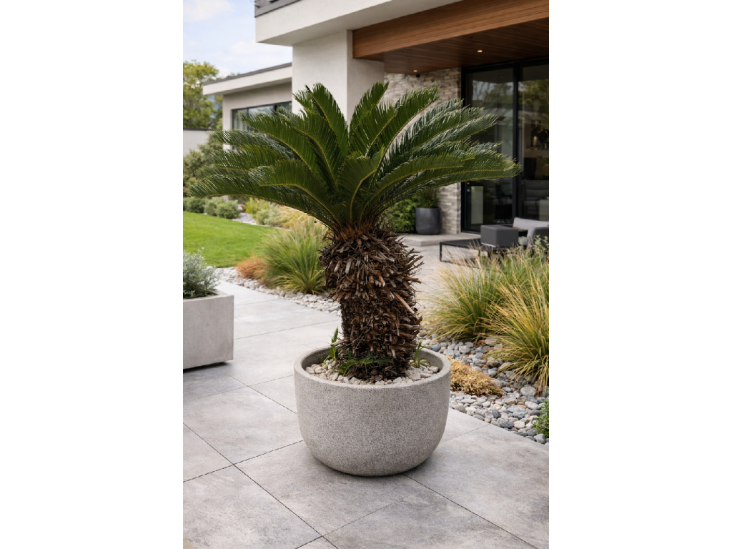 Cycas revoluta, známy ako japonský cykas alebo Sago Palm, patrí medzi najobľúbenejšie exotické rastliny do interiéru aj exteriéru. Vyniká svojím dokonale symetrickým tvarom a lesklými, tmavozelenými listami, ktoré dodajú priestoru luxusný a elegantný nádych. Napriek svojmu exotickému vzhľadu je cykas prekvapivo nenáročný – obľubuje svetlé stanovisko, miernu zálievku a priepustný substrát.