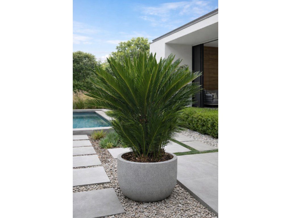 Cycas revoluta, známy ako japonský cykas alebo Sago Palm, patrí medzi najobľúbenejšie exotické rastliny do interiéru aj exteriéru. Vyniká svojím dokonale symetrickým tvarom a lesklými, tmavozelenými listami, ktoré dodajú priestoru luxusný a elegantný nádych. Napriek svojmu exotickému vzhľadu je cykas prekvapivo nenáročný – obľubuje svetlé stanovisko, miernu zálievku a priepustný substrát.